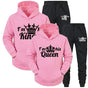 Elevate your couple style with our chic two-piece tracksuit set, designed for ultimate comfort and trendy fashion. Celebrate your bond with soft fabrics and playful prints that showcase your royal connection.